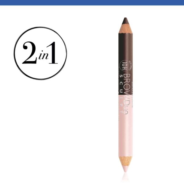 Lorsque vous voulez définir et illuminer avec un seul produit, Brow Duo Sculpt de Bourjois est le crayon à double usage dont vous avez besoin ! Les sourcils restent parfaitement définis jusqu’à 10 heures.