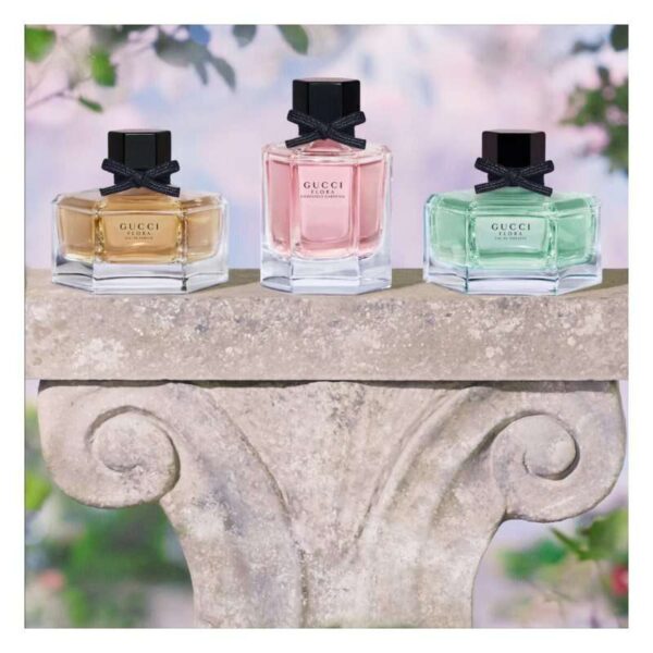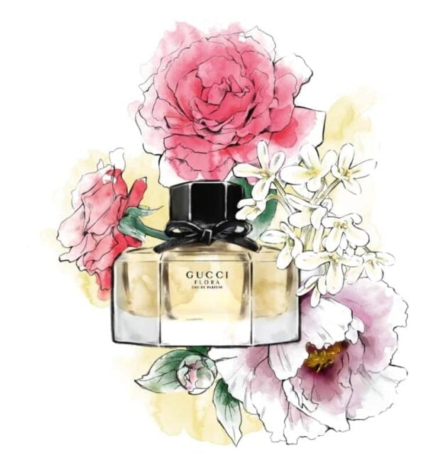 Les fleurs ont toujours été source d’inspiration pour la marque Guccii. En 1966, le célèbre illustrateur Vittorio Accornero a créé pour la princesse monégasque Grace Kelly un foulard aujourd’hui devenu légendaire. Sur une toile de soie, il a dessiné de nombreuses fleurs et autres plantes abondamment colorées. C’est justement ce foulard Flora qui a été la source d’inspiration du parfum du même nom lancé sur le marché en 2010.